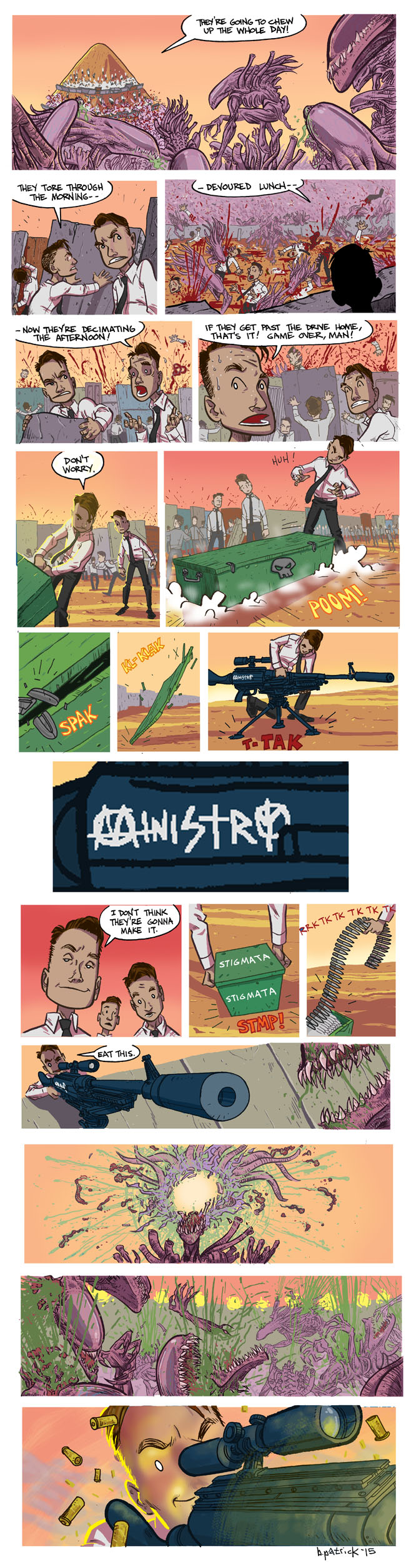 That’ll be the nine and a half minute version off the live album, i reckon. I for one am fully in favor of any comics about how great Ministry are… #fuckgorbachev #fucknoriega #fuckalltheseassholes