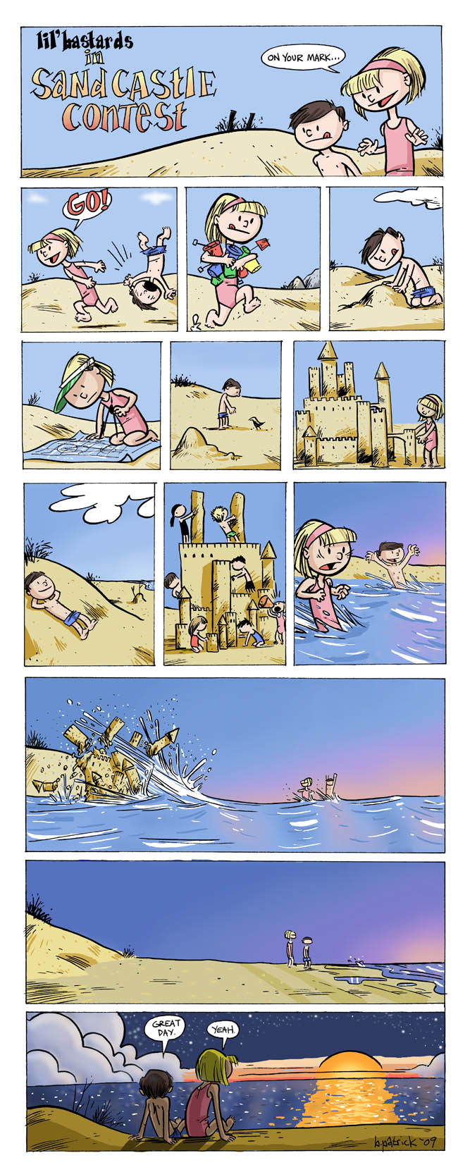 I don’t know. On first glance, I thought the female lil bastard looked happy too because she was agreeing with him. When I was a child I remember having a great time at the beach even if my castle did get knocked down. It was the happiest I’ve ever been, really. Really good stuff. I thought about this one for awhile. Thank you.