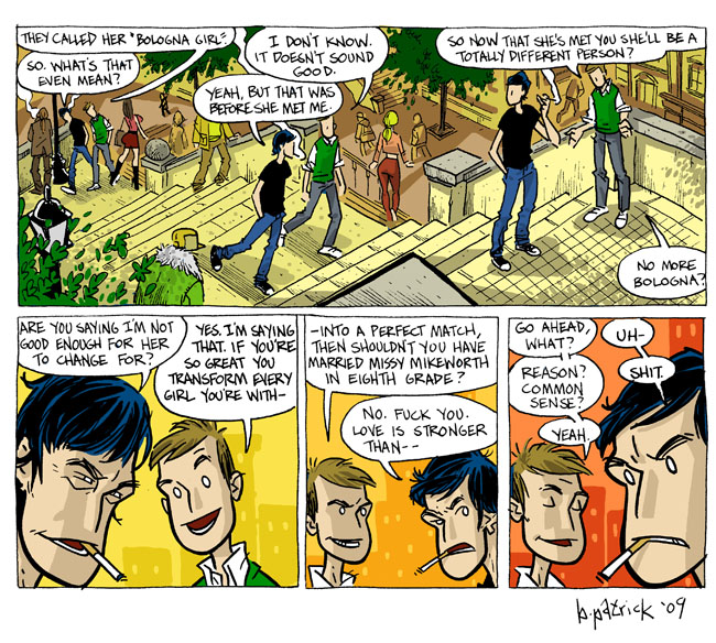 I really like how you did the whole walk up the stairs thing. Also, love it when you draw girls in miniskirts…