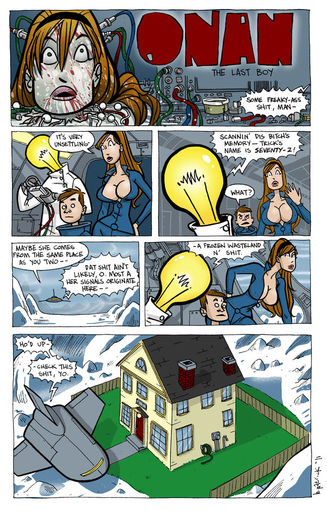 New reader here, I’ve managed to go through most of your archive today and I think that the Onans might be my favourite stuff. I love the tribute to Alien in this page.
