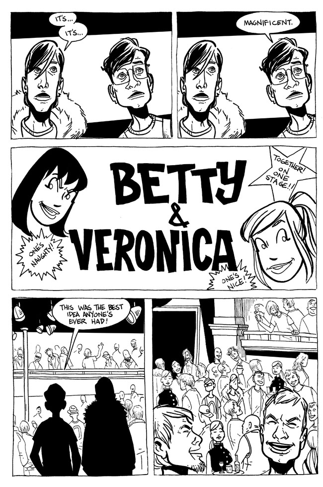 I guffawed pretty heartily; the whole Betty and Veronica thing reminded me of Dan DeCarlo’s stuff on Humorama. Please finish the story one day, pleasepleaseplease.